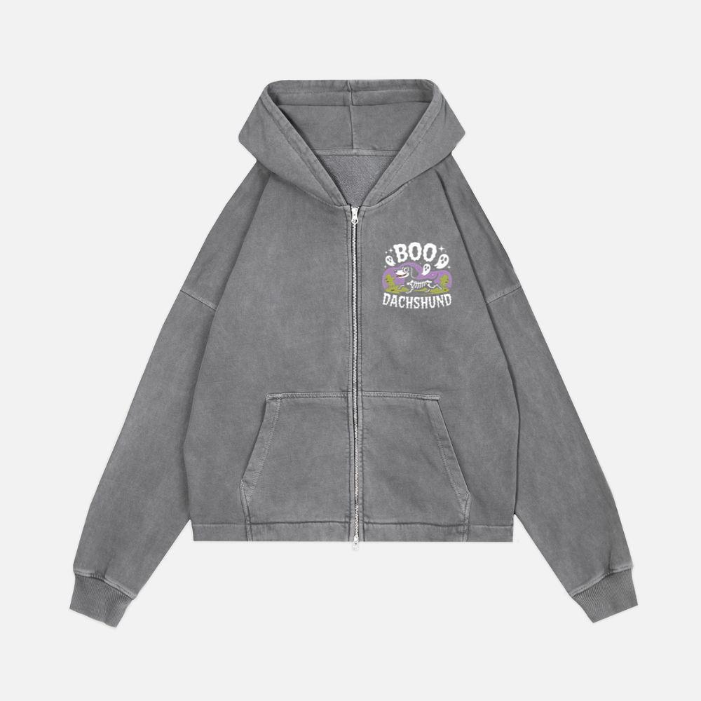 Boo Dachshund Skeleton Dog Halloween Cartoon Design Zip Hoodie