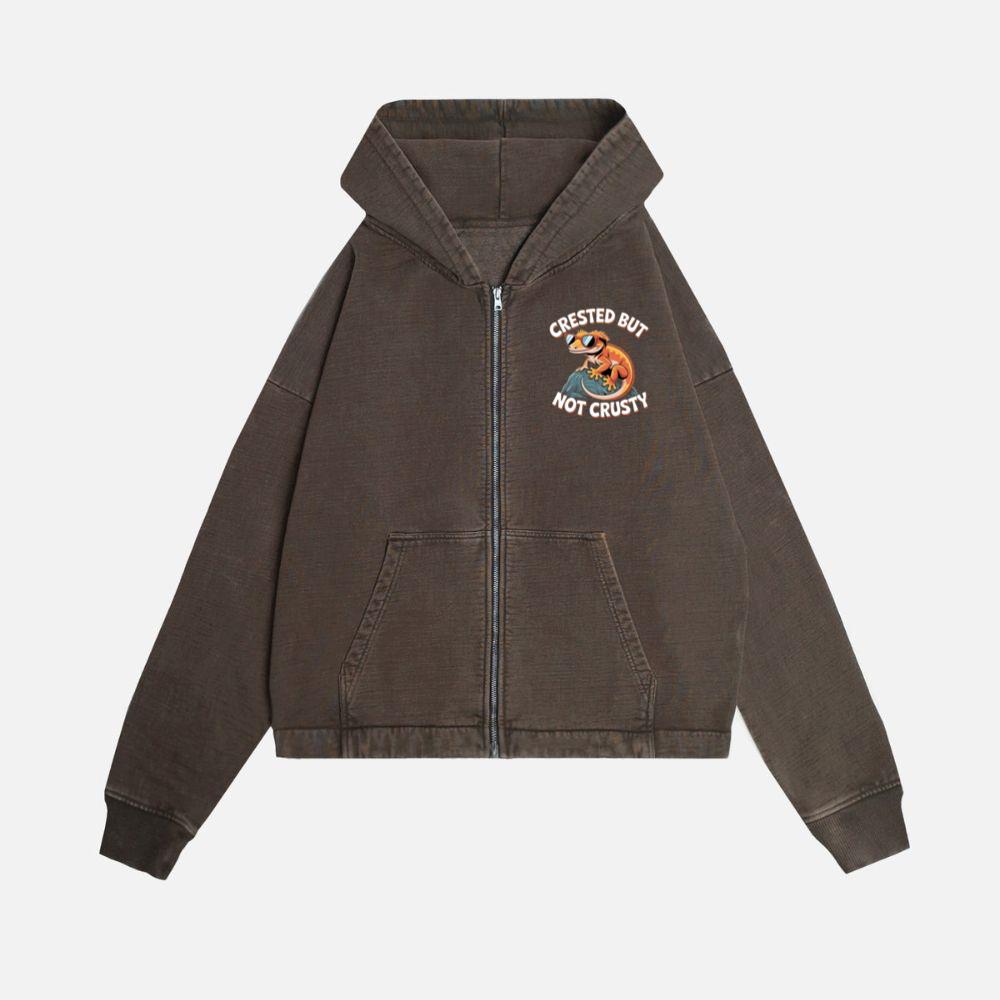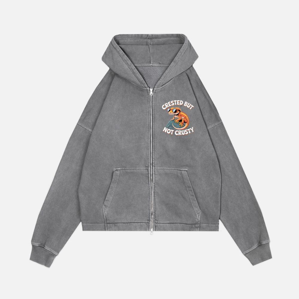 Crested But Not Crusty Lizard Retro Funny Graphic Zip Hoodie