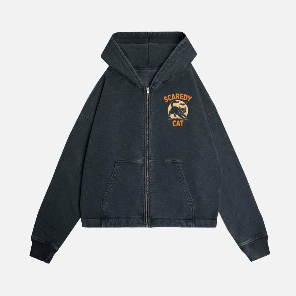 Scaredy Cat Funny Halloween Black Cat Graphic Zip Hoodie