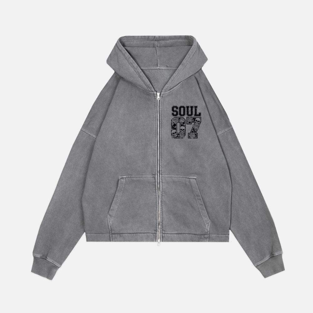 Soul 07 Skull Number Retro Street Graphic Zip Hoodie