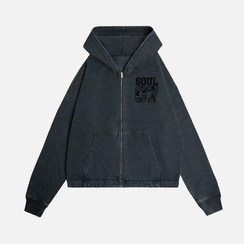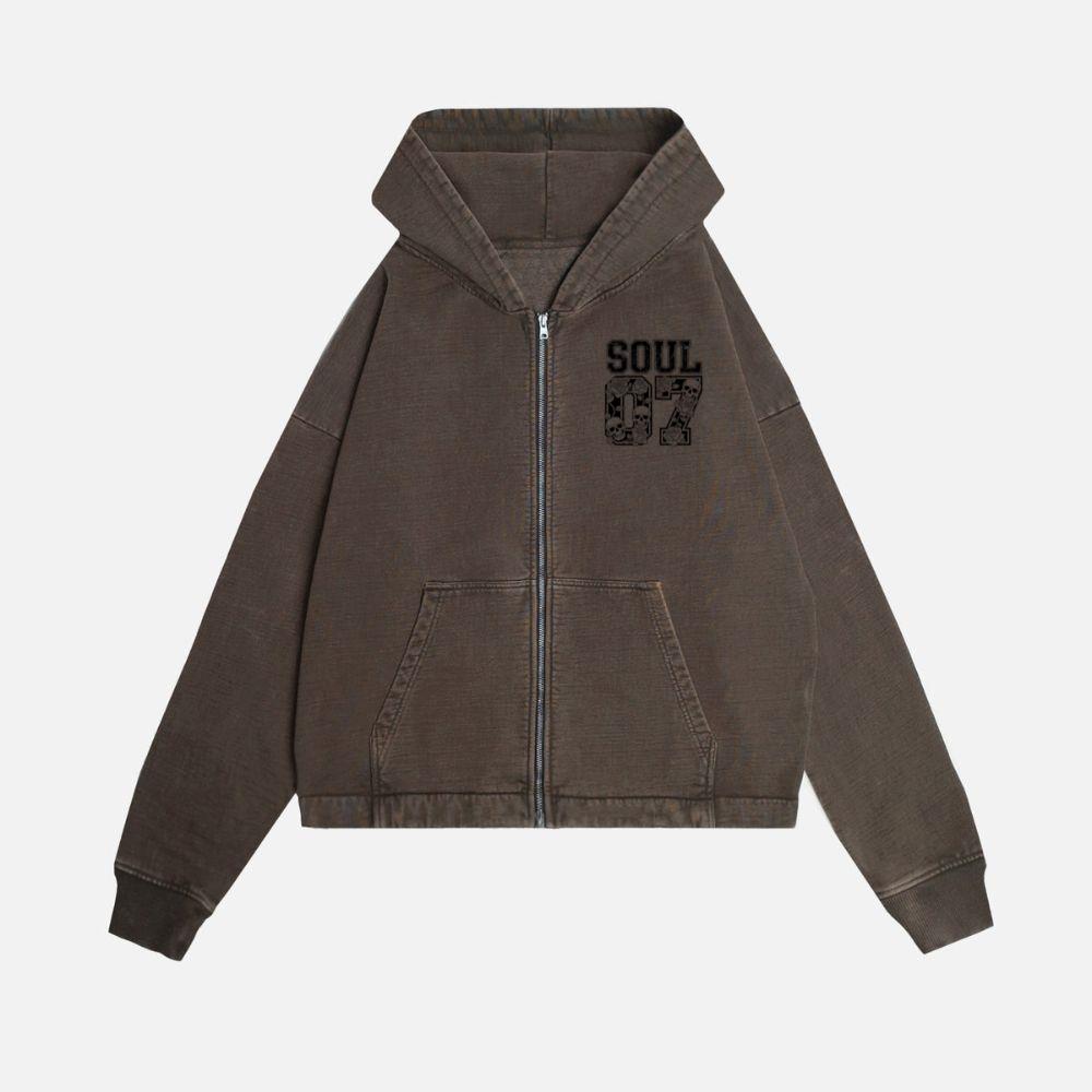 Be the first to review “Soul 07 Skull Number Retro Street Graphic Zip Hoodie”